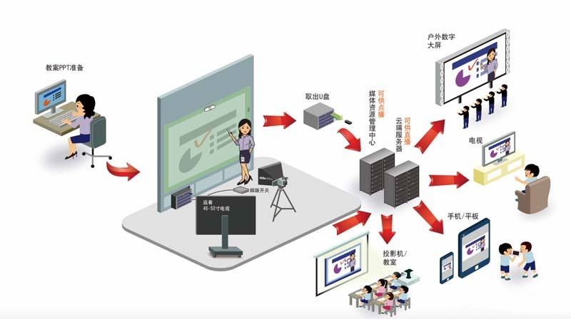 教學視頻應(yīng)用服務(wù)云平臺、嵌入式高清錄播系統(tǒng)、圖像跟蹤系統(tǒng)、高清攝像機、全向拾音系統(tǒng)、控制及分配系統(tǒng)、控制面板及講臺等。
